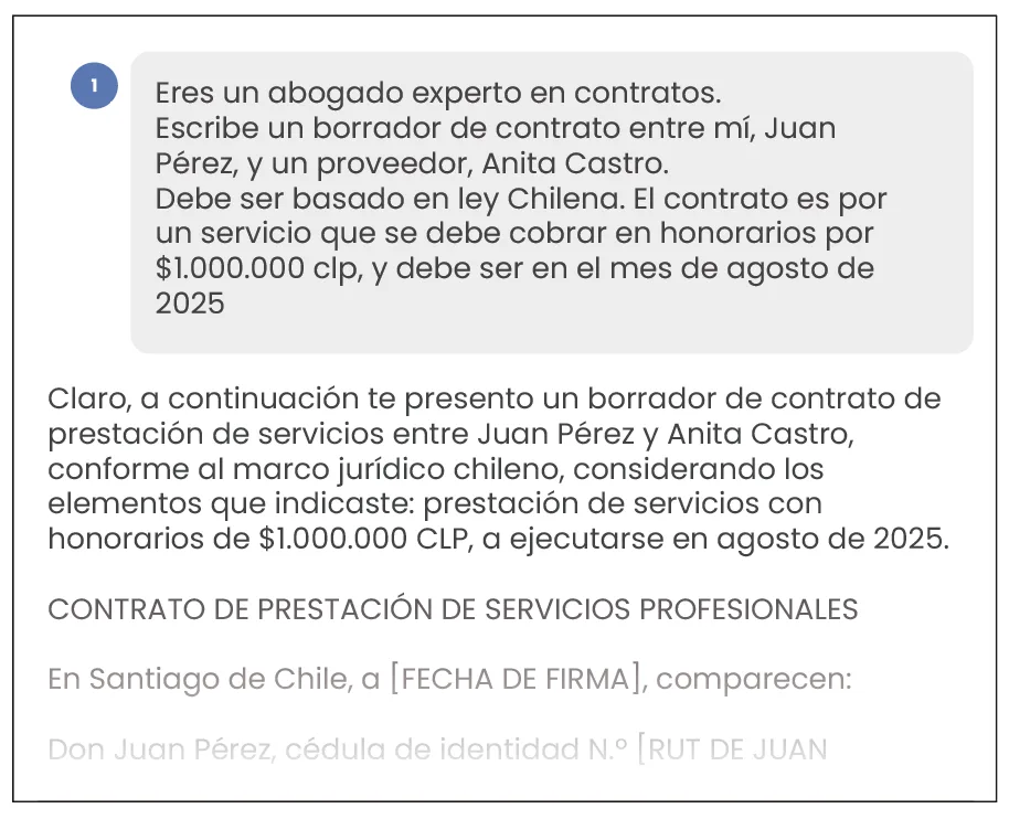 El contexto es la información clave que el modelo necesita para procesar tu solicitud. Piensa en cómo se lo explicarías a alguien que no conoce tu empresa ni tu país, pero sí tu rubro. Aclara términos locales (por ejemplo: “educación media” o escalas de evaluación en Chile), marcas conocidas en tu mercado (ej: “Cristal es una marca líder en el mercado de cervezas”), cuáles son los documentos que estás adjuntando (ej: “Este Excel contiene la información de …”), o la meta que tienes sobre el entregable (ej: “Estas ideas son para aumentar nuestra recordación de marca”).