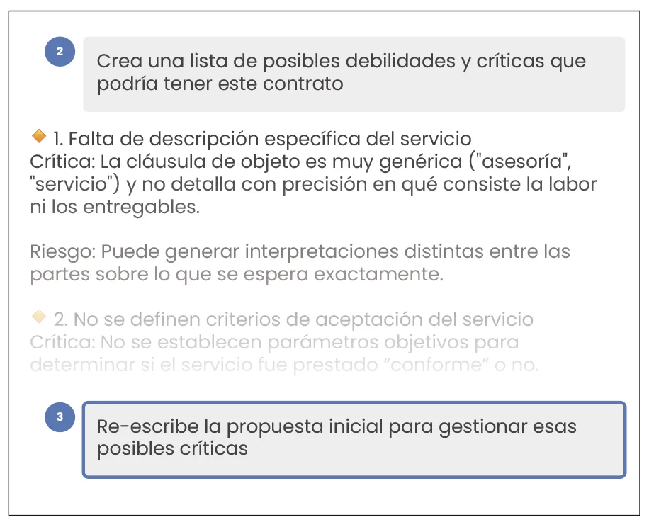 Pídele al asistente que divida la tarea a realizar en partes. Por ejemplo, con “Antes de entregarme la respuesta, divide este problema en subtareas y resuélvelas una a una.”