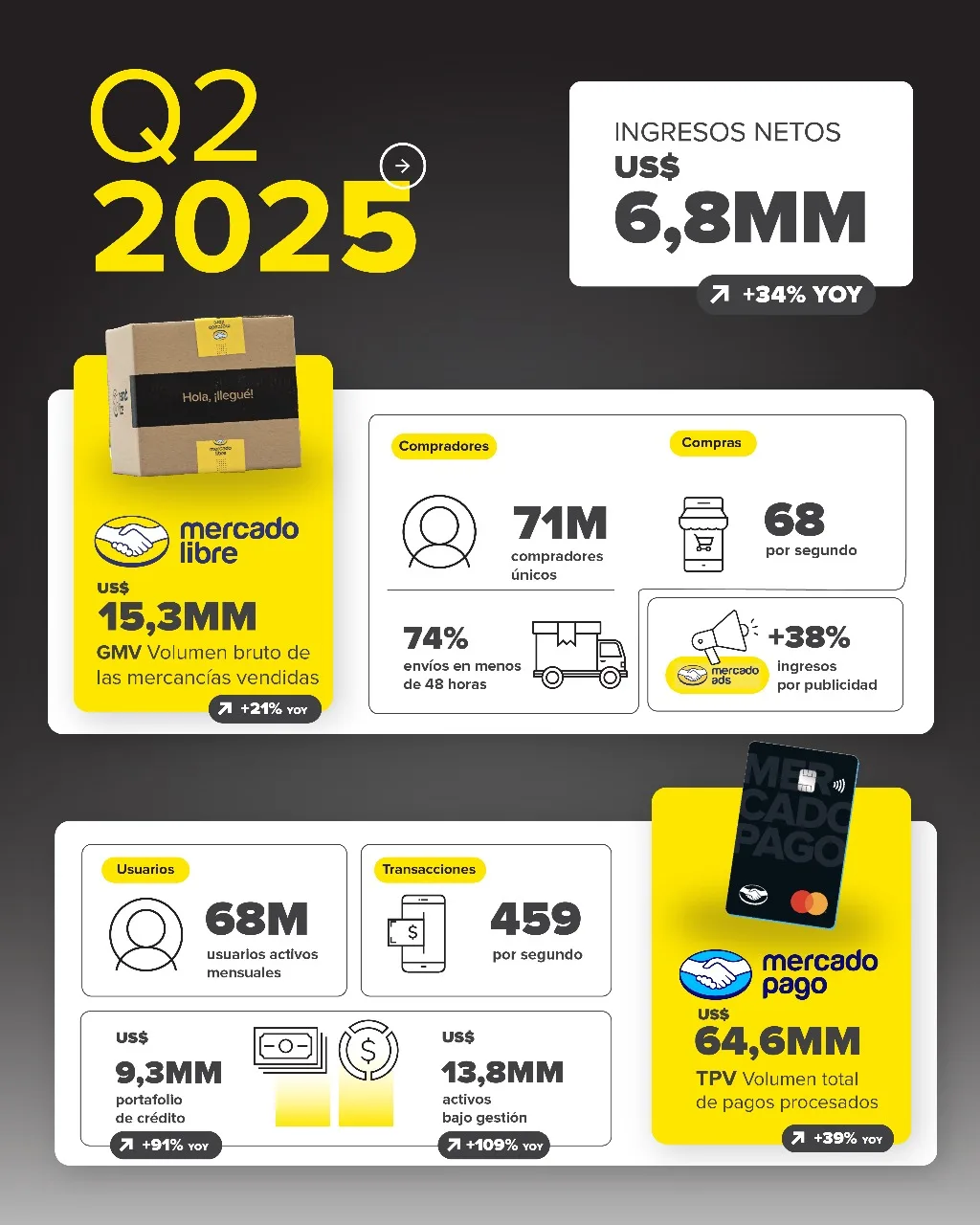 Novedades socios Mercado Libre logra otro sólido desempeño en el segundo trimestre de 2025, reportando ingresos netos de us$ 6,8 mil millones e ingresos operativos de us$ 825 millones 04/08/2025
