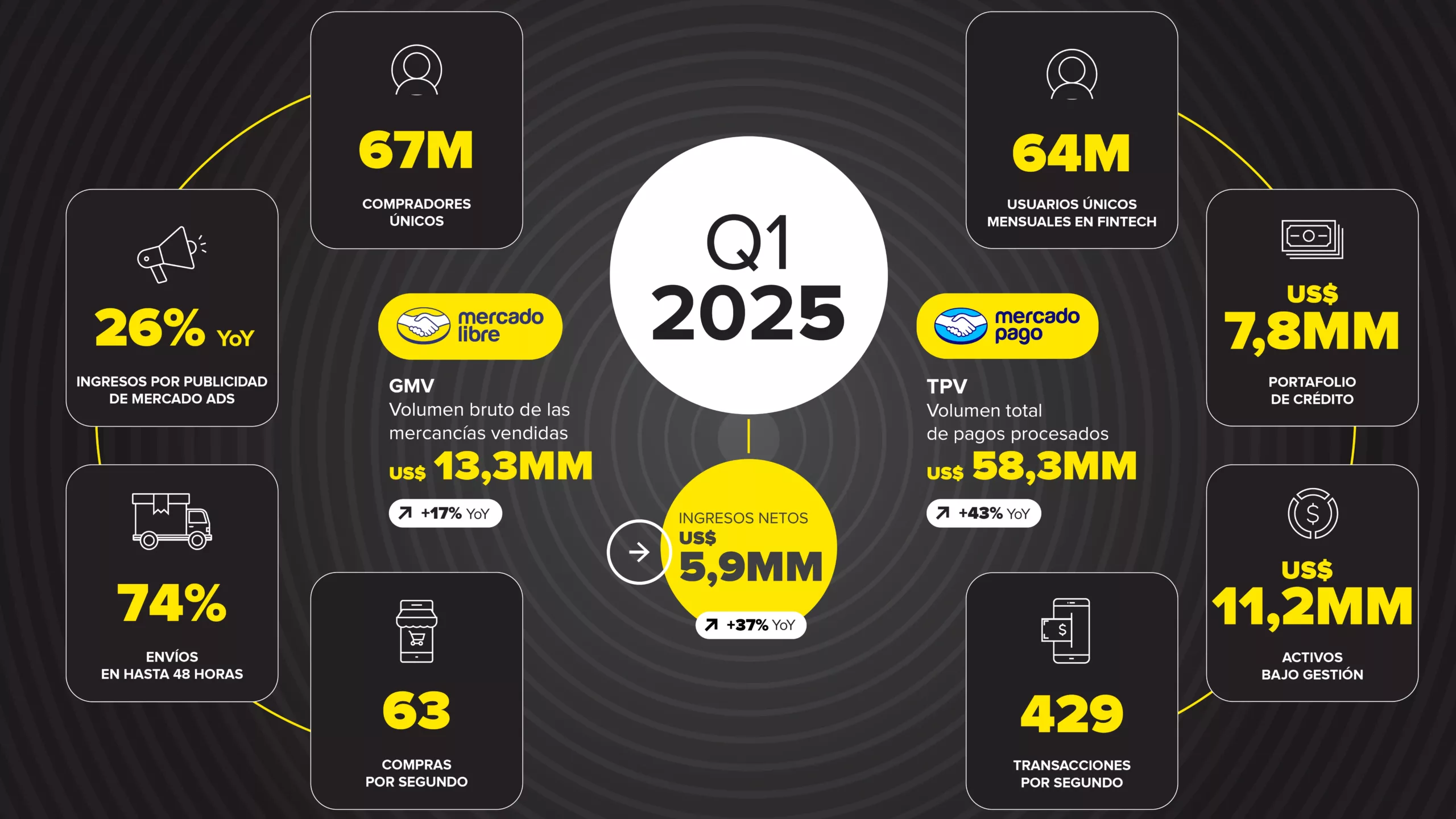 Novedades socios Mercado Libre aprovecha el impulso de 2024 y presenta sólidos resultados en el Q1 2025, reportando US$ 5,9 mil millones en ingresos y una ganancia neta de US$ 494 millones 07/05/2025